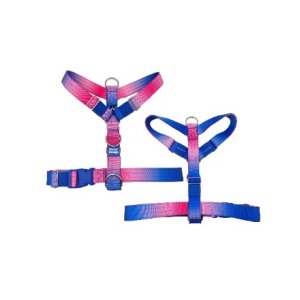 This haness is designed to be stepped into with the front paws and fasten the strap on the back, the is design is perfect for pets that are uncomfortable with overhead harnesses.