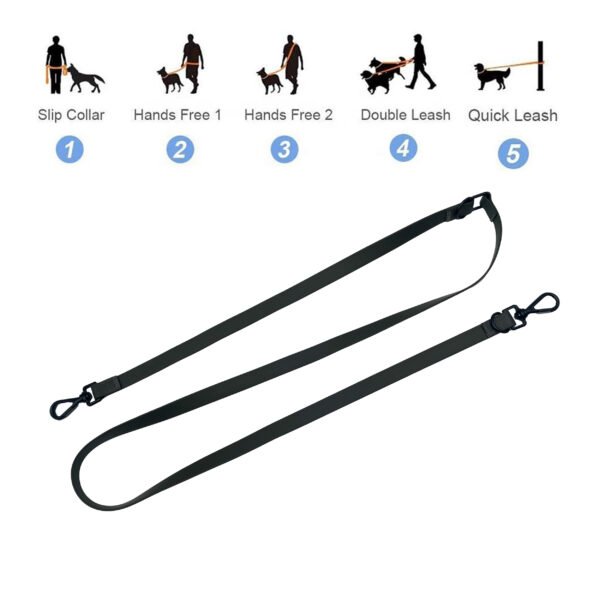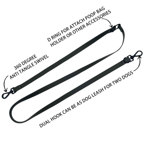 Black Biothane Waterproof Two Dog Leash